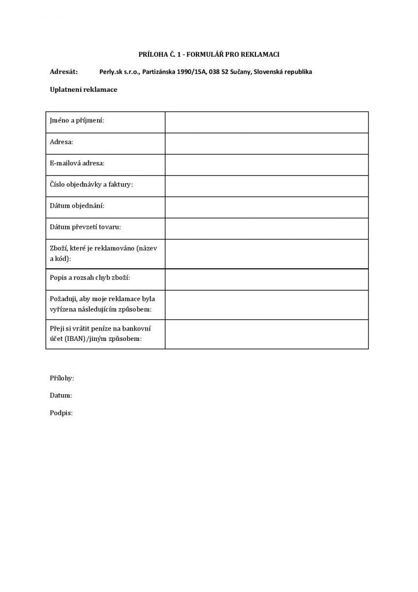 9.1. Jako spotřebitel jste oprávněni podávat podněty a stížnosti písemně, a to prostřednictvím e-mailu na: perly@perly.sk.