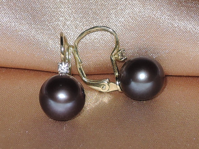 Perlové náušnice vyrobené z pravých černých sladkovodních perel a kování ze žlutého zlata ryzosti 585/1000 (14kt.). Perly kvality AAA mají kulatý tvar, hladký povrch a velmi vysoký lesk. Kování náušnic sestávají z patentů kombinovaných se zirkony velikosti 2,3 mm. Hmotnost páru kování je cca 1,40 gramu. Velikost perel můžete zvolit od 7 do 9 mm. Na fotografii jsou perly velikosti 9 mm. Na požádání k náušnicím doporučíme přívěsek a prsten jako kombinaci do setu šperků. Šperky posíláme v dárkovém balení spolu s certifikátem pravosti.
