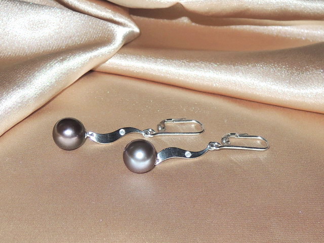 Luxusní náušnice ze setu šperků BC04SS-B jsou kombinací kování ze stříbra, zirkonů a černých sladkovodních perel. Perly mohou mít velikost 9 nebo 10 mm, jsou kvality AAA s hladkým povrchem a vysokým leskem. Kování náušnic jsou ze stříbra ryzosti 925/1000 kombinované se zirkony velikosti 2mm. Kování jsou povrchově upraveny rhodiem a mají vzhled bílého zlata. Celková hmotnost stříbra páru náušnic je cca 2,4 gramu. Velikost kování náušnic je cca 23 mm, celková délka náušnic s patentem a perlou cca 55mm. Tyto náušnice jsou jedním z luxusních šperků vlastního designu "BCstyle" .Šperky posíláme v dárkovém balení spolu s certifikátem pravosti.