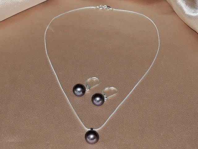 Nádherný jednoduchý a zároveň elegantní set šperků sestává z náušnic a přívěsku s řetízkem. Šperky jsou vyrobeny z pravých černých sladkovodních perel a stříbrných kování ryzosti 925/1000. Perly kvality AAA mají kulatý tvar, hladký povrch a vysoký lesk.