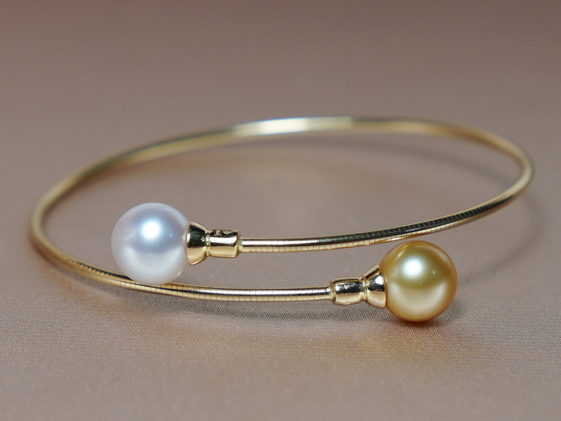Zlatý náramek 18 kt. s perlami Jižního Pacifiku