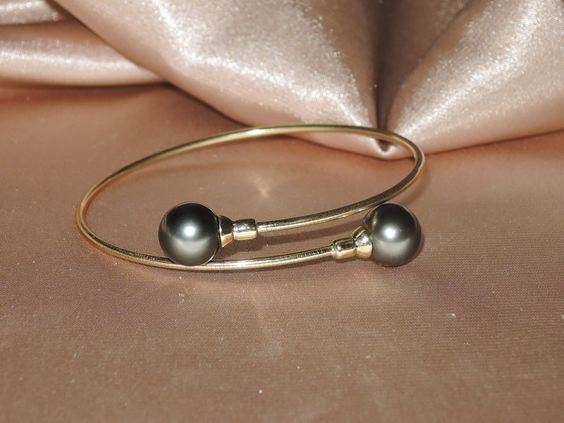 Elegantní perlový náramek vyrobený ze žlutého zlata ryzosti 750/1000 a dvou pravých tahitských perel. Konstrukce náramku je pružná a přizpůsobí se každému běžnému obvodu zápěstí, což je možné díky titanovému vláknu uvnitř konstrukce. Tloušťka konstrukce náramku je 1,8 mm, délka 22 cm s překrytím konců (18 cm obvod), která se podle potřeby může roztáhnout (zmenšuje se překrytí konců). Celková hmotnost náramku bez perel je cca 5,60 gramu, z toho 1 gram titanové vlákno. Perly nejvyšší kvality AAA mají kulatý tvar, hladký povrch a vysoký lesk. Velikost perel můžete zvolit od 9 do 11 mm, případně po dohodě lze zkombinovat velikost perel. Po dohodě je rovněž možné osadit perly v jiné kvalitě s přiměřeným snížením ceny. Náramek posíláme v dárkovém balení spolu s certifikátem pravosti a v rámci Česka a Slovenska máte dopravu zdarma.