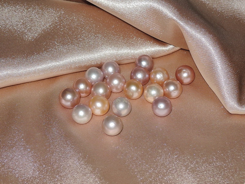 Sladkovodní Edisonove perly broskvově růžové a růžové barvy kvality AA (povrch A+, lesk AA, tvar AA+) mají kulatý tvar, hladký povrch s povrchovými vadami v rámci uvedené kvality. Velikost perel je 9,5 - 10 mm. Perly mohou být nevrtané nebo polovŕtané. Cena 750 Kč je za 1 perlu.