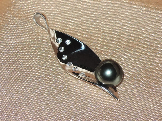 Luxusní přívěsek ze setu BC02WS-T je kombinací kování z bílého zlata, zirkonů nebo briliantů a tahitské perly. Perla nejvyšší kvality AAA může mít velikost od 9 do 12 mm, má hladký povrch s velmi vysoký leskem. Kování přívěsku je z bílého zlata 585/1000 (14kt.) Kombinované se zirkony nebo brilianty velikosti cca 2mm / 0,033ct. Brilianty jsou v kvalitě VVS / G, H. Celková hmotnost zlata přívěsku je cca 5,3 gramu. Celková délka přívěsku cca 50 mm. Tento přívěsek je jedním z luxusních šperků vlastního designu "BCstyle". Šperk splní očekávání náročných klientů, kteří hledají nejvyšší kvalitu ve spojení s jedinečností šperku, který nelze vidět v nabídkách jiných predajní.Šperky posíláme v dárkovém balení spolu s certifikátem pravosti. V Čechách máte dopravu zdarma.