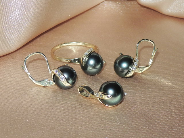 Luxusní set šperků sestává z náušnic BC05YE-T, přívěsku BC05YP-T a prstenu BC05YR-T. Náušnice, přívěsek i prsten jsou kombinací kování ze zlata, briliantů a tahitských perel. Perly nejvyšší kvality AAA velikosti cca 9,5 mm mají kulatý tvar, hladký povrch a velmi vysoký lesk. Kování jsou vyrobeny ze žlutého zlata ryzosti 585/1000 (14kt.) Kombinované s brilianty velikosti cca 1,5mm / 0,015ct. Brilianty mají čistotu VVS, barvu G-H. Tento set je jedním z luxusních šperků vlastního designu "BCstyle". Šperky splní očekávání náročných klientů, kteří hledají nejvyšší kvalitu ve spojení s jedinečností šperku, který nelze viděla v nabidky jiných prodejen. Set šperků s magickými tahitského perlami dostanete s certifikátem pravosti v luxusní dárkové kazetě. V Čechách vám ho doručíme zdarma.