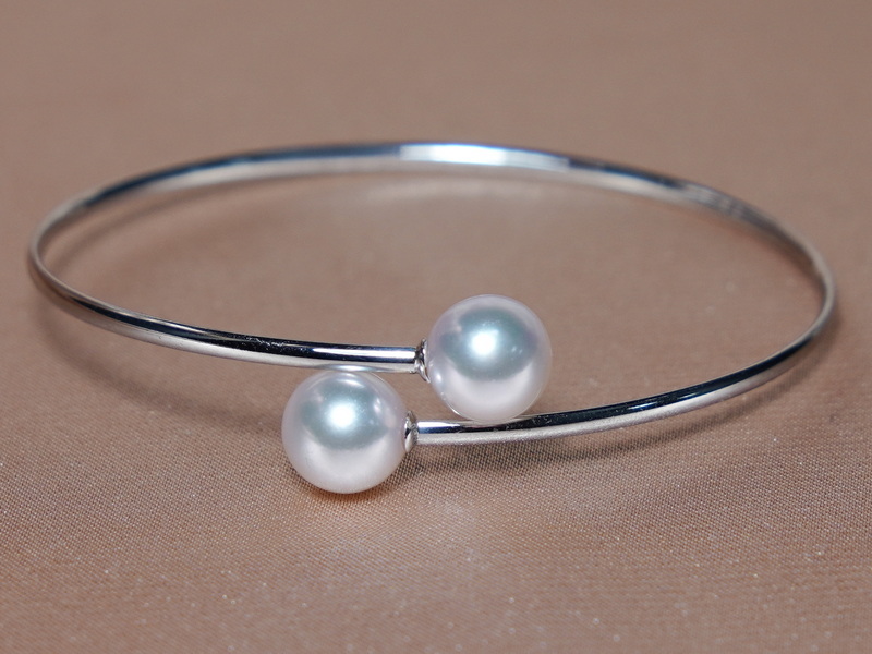 Zlatý perlový náramek WW08WB-AA vyrobený z bílého zlata ryzosti 750/1000 (18 kt.) a pravých japonských akoya perel. Perly nejvyšší kvality AAA mají kulatý tvar, hladký povrch a velmi vysoký lesk. Velikosti perel můžete zvolit od 7 mm do 8,5 mm. Na fotografii jsou perly velikosti 8,5 mm. Pro větší perly doporučujeme mohutnější konstrukci náramku z naší nabídky.