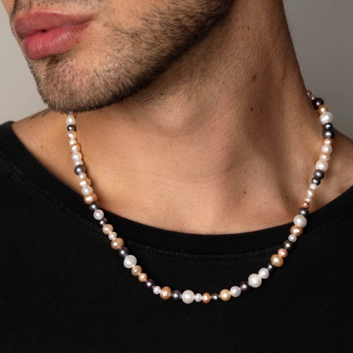 Kromě klasických mužských perlových šperků z tmavých tahitských perel, jako náramky a náhrdelníky s jednou nebo několika perlami v kombinaci s kůží, je dnes vidět stále častěji na mužích i klasické celoperlové náhrdelníky z bílých perel, nebo vícebarevné náhrdelníky, dokonce víceřadé na množství způsobů. Rovněž náramky z bílých perel, náušnice či prsteny s perlou nejsou na módních molech u mužských celebrit výjimkou.