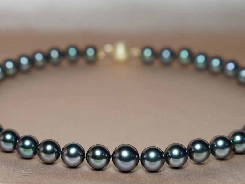 Luxusní perlový náhrdelník TPN62OP je vyroben z pravých tahitských perel v nejvyšší – exkluzivní kvalitě Aurora LAGOON (typ certifikátu SS), certifikované nejuznávanější japonskou institucí Pearl Science Laboratory (PSL). Vyšší třída kvality tahitských perel již neexistuje!