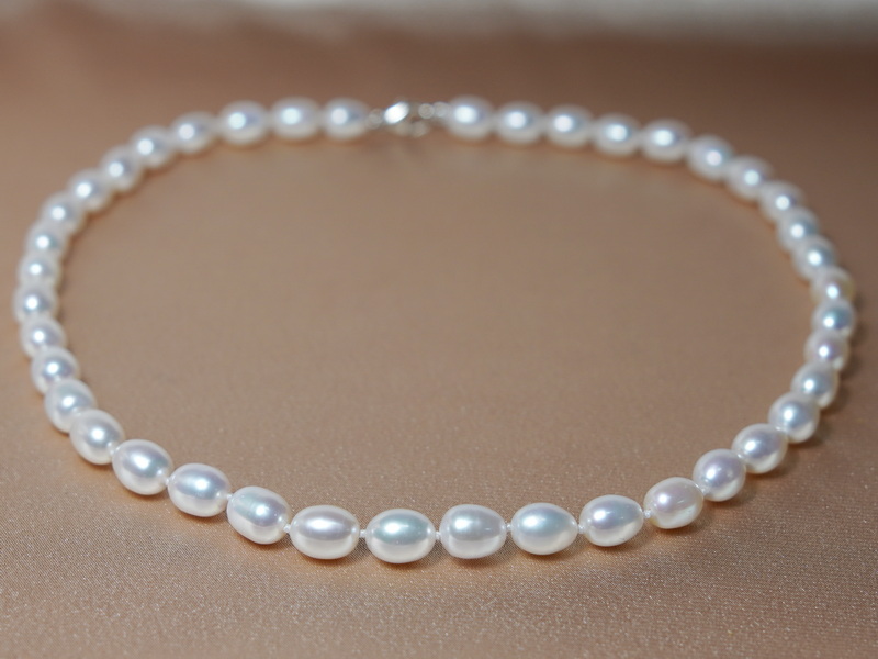 Náhrdelník říční perly OSN7580AA+wJ vyroben z pravých bílých oválných sladkovodních perel velikosti cca 7,5-8 x 9-10 mm. Perly jsou v kvalitě AA+ (lesk AA+, čistota povrchu AA+), fotografie náhrdelníku jsou autentické. Mezi každou perlou jsou navázány uzlíky kvůli krásnějšímu vzhledu a bezpečnosti. Náhrdelník z říčních perel má délku cca 450 mm a je ukončen uzávěrem ze stříbra ryzosti 925/1000. Na požádání vyrobíme náhrdelník s jinou délkou nebo s jiným uzávěrem, případně do setu vyrobíme náramek ze stejných perel a doporučíme náušnice. Tento perlový šperk je vhodný pro běžné nošení i vzácné příležitosti. Náhrdelník z říčních perel OSN7580AA+wJ posíláme v dárkovém balení s certifikátem pravosti a za doručení neplatíte.