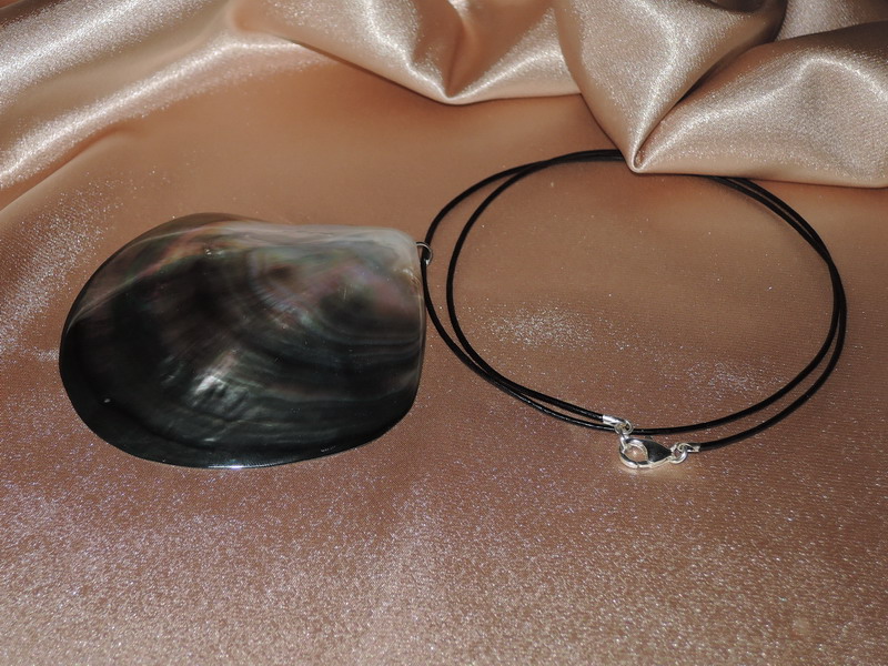 Náhrdelník TPSN100G je vyroben z lastury perlorodky Pinctada margaritifera, kde vznikají černé tahitské perly, kožené šňůrky a zapínání ze stříbra. Lastury jsou pěkně vyleštěné a opracované. Rozměr lastury je cca 9 - 10 cm x 8 - 9 cm, hmotnost lastury je cca 30 - 50 gramů. Uzávěr je vyroben ze stříbra ryzosti 925/1000 o hmotnosti 1 gram. Náhrdelník může mít délku 50,55,60 nebo 65 cm, případně v poznámce uveďte požadovanou délku. Nakolik lastury jsou přírodní produkty a jsou jedinečné, je možná mírná odchylka v hmotnosti, nebo v barevném provedení oproti fotografii.
