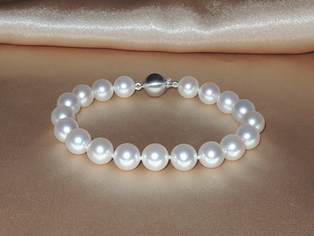 Perly nejvyšší kvality AAA jsou dokonale kulaté a mají nádherný vysoký lesk a hladký povrch. Mezi každou perlou jsou navázány uzlíky z důvodu krásnějšího vzhledu a bezpečnosti, navlečené jsou na pevné hedvábné niti. Délka náramku je cca 195 mm. Perlový náramek je možné vyrobit v různých délkách s přiměřeným zvýšením nebo snížením ceny. Náramek je ukončen kroužky a uzávěrem ze zlata ryzosti 585/1000 (14kt.). Je možné si vybrat barvu zlata.