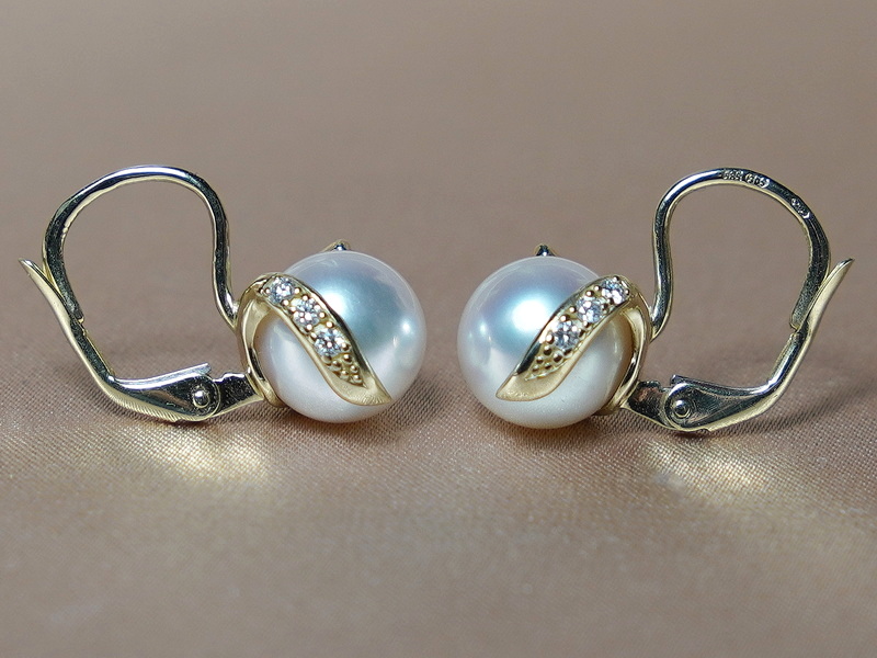 Perly nejvyšší kvality AAA velikosti cca 9,5 mm mají kulatý tvar, hladký potvrch a velmi vysoký lesk. Kování náušnic jsou vyrobeny ze žlutého zlata ryzosti 585/1000 (14kt.) kombinované s brilianty velikosti cca 1,5mm/0,015ct. Brilianty jsou v kvalitě VVS/G,H. Celková hmotnost zlata páru náušnic je cca 2,7 gramu. Tyto náušnice jsou jeden z luxusních šperků vlastního designu „BCstyle“. Šperky splní očekávání náročných klientů, kteří hledají nejvyšší kvalitu ve spojení s jedinečností šperku, který nelze spatřit v nabídkách jiných prodejen.