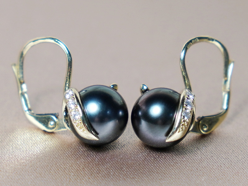 Zlaté náušnice s tahitskými perlami BC05YE-T ze setu šperků BC05YS-T jsou kombinací kování ze zlata, briliantů a tahitských perel. Perly nejvyšší kvality AAA mají velikost cca 9,5 mm, mají kulatý tvar, hladký povrch a velmi vysoký lesk. Kování náušnic jsou ze žlutého zlata ryzosti 585/1000 (14kt.) Kombinované s brilianty velikosti cca 1,5mm / 0,015ct. Brilianty jsou v čistotě VVSa barvě G-H. Celková hmotnost zlata páru náušnic je cca 2,7 gramu. Tyto náušnice jsou jedním z luxusních šperků vlastního designu "BCstyle". Šperky splní očekávání náročných klientů, kteří hledají nejvyšší kvalitu ve spojení s jedinečností šperku, který nelze vidět v nabídkách jiných prodejen. Náušnice vám doručíme s certifikátem pravosti v dárkové krabičce. V Čechách máte dopravu zdarma.
