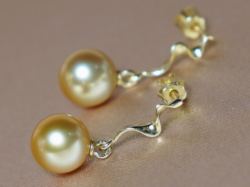Perly v nejvyšší kvalitě AAA mají kulatý tvar, hladký povrch a velmi vysoký lesk. Kování náušnic ze žlutého zlata mají hmotnost 1,45 gramu a zapínání je zajištěno šroubovacími balónky. Celková délka perlových náušnic je 2,5 – 3 cm, dle zvolené velikosti perly. Na fotografiích jsou perly velikosti 9 mm. Zlaté náušnice jsou vhodné k přívěsku SSPP100B, s nímž tvoří nádherný set.