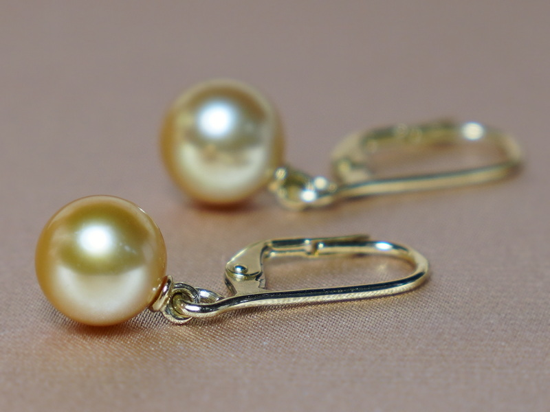 Výjimečné elegantní náušnice SSPEZGC ze zlatožlutých perel Jižního Pacifiku nejvyšší kvality AAA a kování ze případů ze 14kt. zlata.