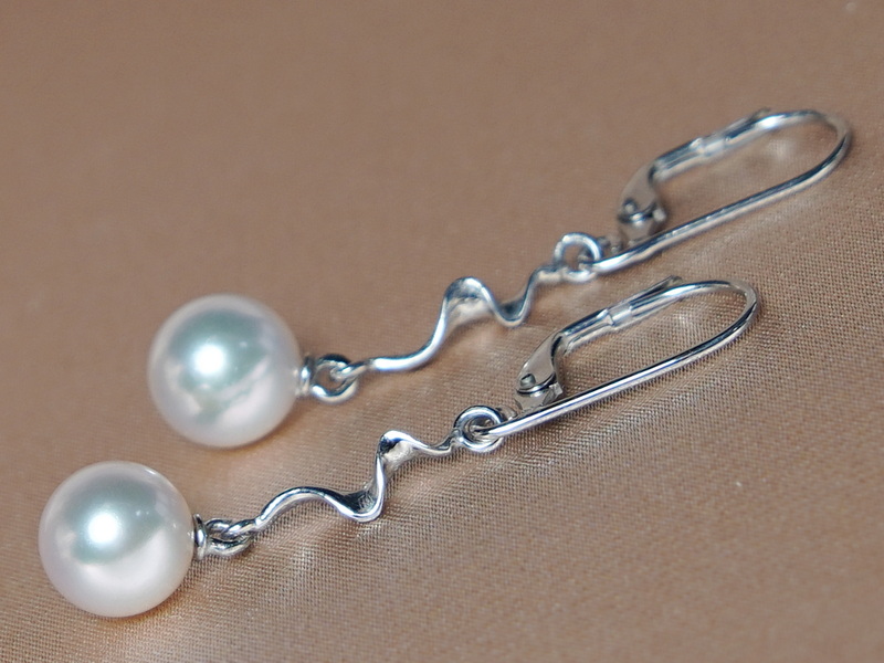 Elegantní visací náušnice AE002C z japonských mořských akoya perel nejvyšší kvality AAA a kování ze 14 karátového bílého zlata.