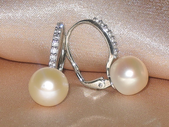 Perlové náušnice vyrobené z pravých broskvově růžových sladkovodních perel a kování ze stříbra ryzosti 925/1000. Částečně zploštělé perly s povrchovou kvalitou AAA mají hladký povrch a velmi vysoký lesk. Kování náušnic sestávají z patentů kombinovaných se zirkony. Každá náušnice má 7 ks zirkonů velikosti 1,5 mm. Hmotnost páru kování je cca 1,7 gramu. Velikost perel je 9 mm. Na fotografii jsou perly velikosti 9 mm. Výška patentu je cca 18 mm – vhodnější pro výše propíchnuté dírky. Na požádání k náušnicím doporučíme přívěsek a prsten jako kombinaci do setu šperků. Náušnice posíláme v dárkové krabičce.