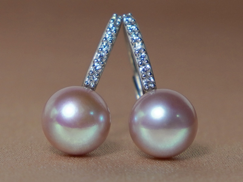 Perlové náušnice vyrobené z pravých fialovorůžových sladkovodních perel a kování z bílého zlata ryzosti 585/1000 (14kt.).