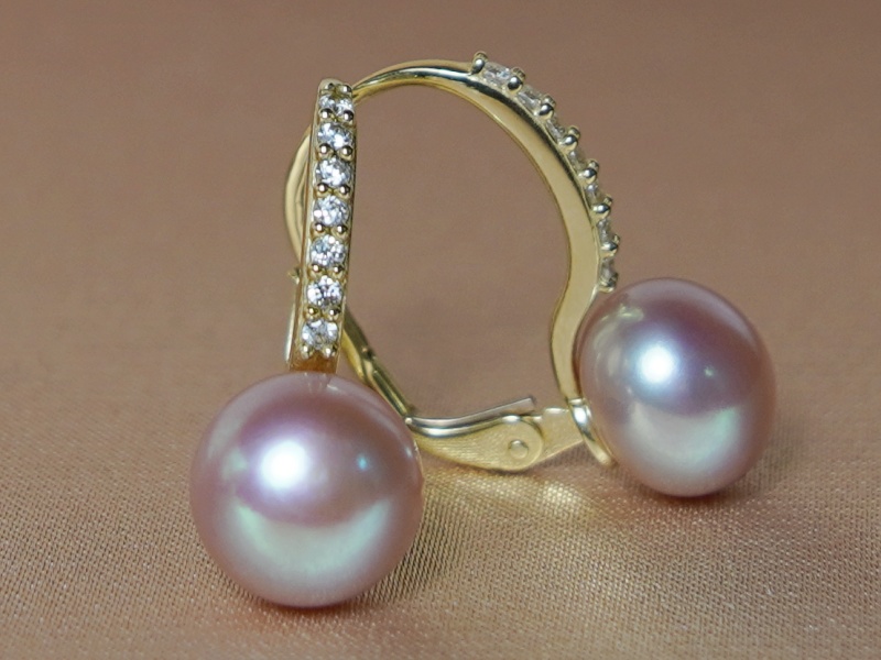 Perlové náušnice vyrobené z pravých fialovorůžových sladkovodních perel a kování ze žlutého zlata ryzosti 585/1000 (14kt.).