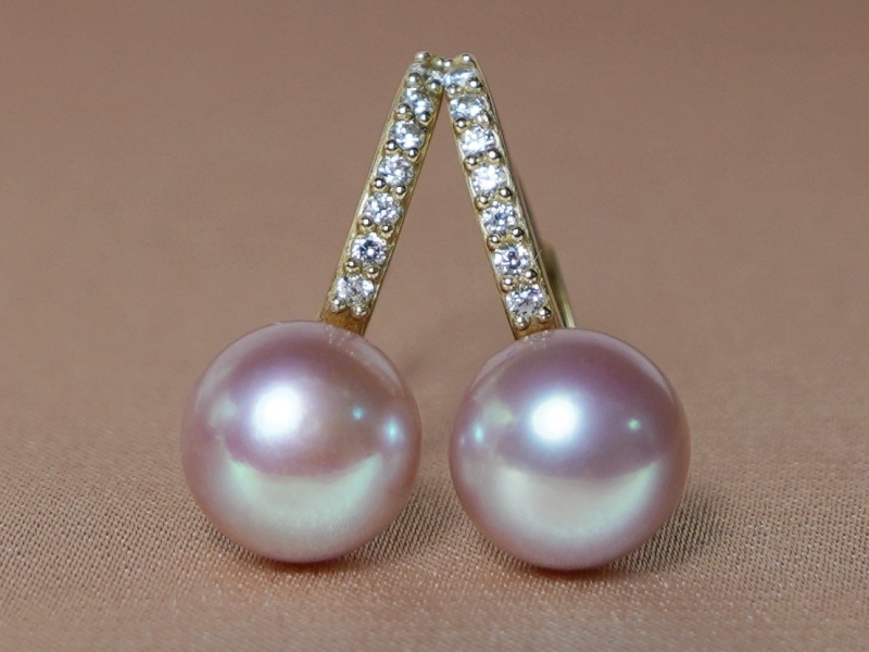 Perlové náušnice z pravých fialovorůžových sladkovodních perel a žlutého zlata 14kt.