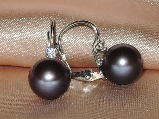 Perlové náušnice vyrobené z pravých černých sladkovodních perel a kování z bílého zlata ryzosti 585/1000 (14kt.). Perly kvality AAA mají kulatý tvar, hladký povrch a velmi vysoký lesk. Kování náušnic sestávají z patentů kombinovaných se zirkony velikosti 2,3 mm. Hmotnost páru kování je cca 1,40 gramu. Velikost perel můžete zvolit od 7 do 9 mm. Na fotografii jsou perly velikosti 9 mm. Na požádání k náušnicím doporučíme přívěsek a prsten jako kombinaci do setu šperků. Šperky posíláme v dárkovém balení spolu s certifikátem pravosti.