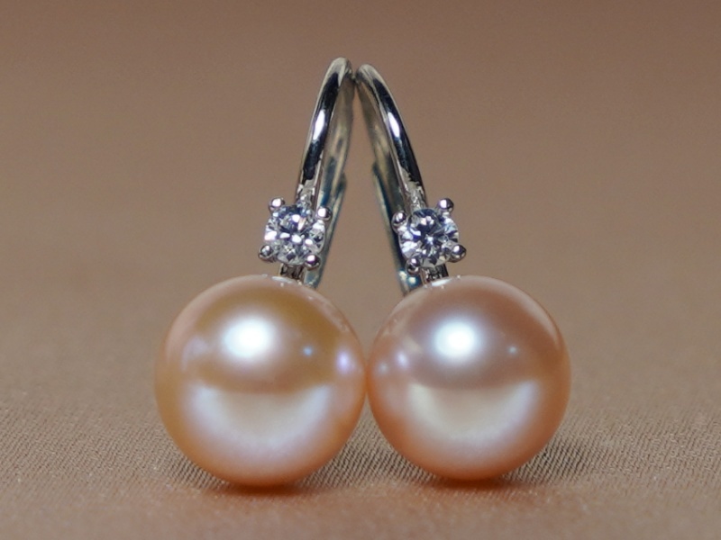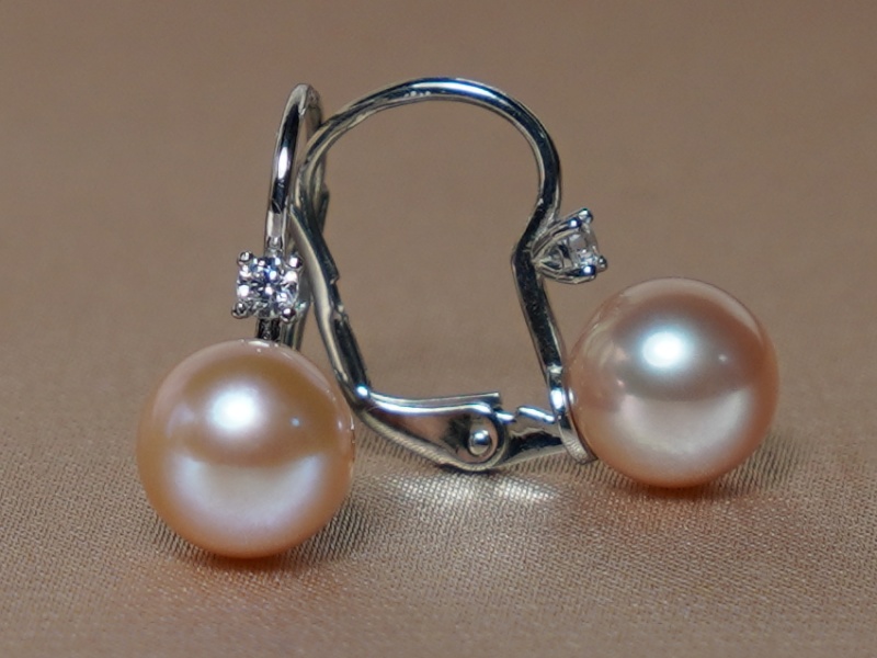 Perlové náušnice BC022WFE-P jsou vyrobeny z pravých broskvově růžových sladkovodních perel a kování z bílého zlata ryzosti 585/1000 (14kt.).