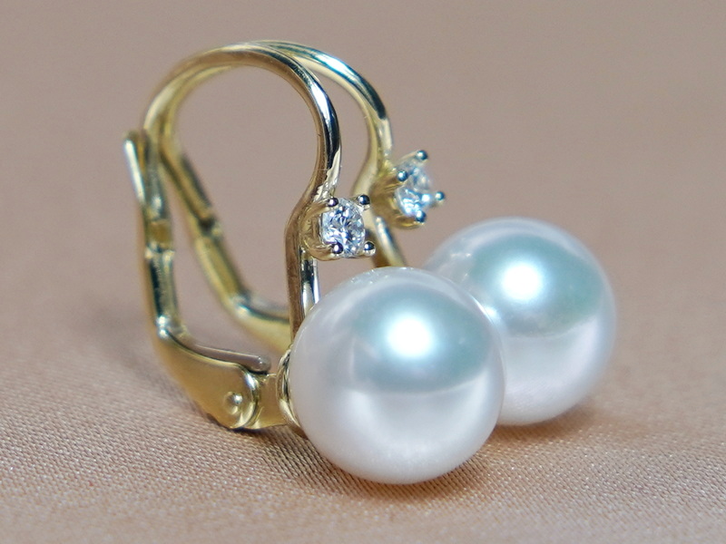 Zlaté náušnice BC022YE-A vyrobené z pravých japonských bílých mořských Akoya perel a kování ze žlutého zlata ryzosti 585/1000 (14kt.). Perly nejvyšší kvality AAA mají kulatý tvar, hladký povrch a velmi vysoký lesk. Kování zlatých náušnic sestávají z patentů kombinovaných se zirkony nebo brilianty. Velikost zirkonů nebo briliantů je cca 2,3 mm / 0,105 ct. Brilianty jsou v kvalitě VVS / G, H. Hmotnost páru zlatých kování je cca 1,40 gramu. Velikost mořských perel můžete zvolit od 7 do 9 mm. Na fotografii jsou perly velikosti 8 mm. Na požádání k zlatým perlovým náušnicím doporučíme přívěsek a prsten jako kombinaci do setu šperků. Zlaté náušnice s perlou posíláme v dárkovém balení spolu s certifikátem pravosti. V Čechách máte dopravu zdarma.