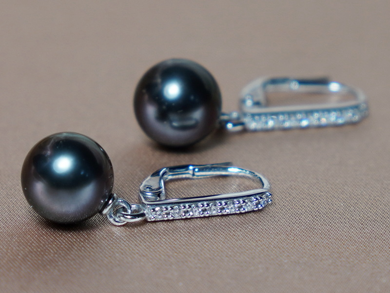 Perlové náušnice BC024WE-T vyrobené z pravých tahitských perel a kování z bílého zlata ryzosti 585/1000 (14kt.) kombinovaných se zirkony nebo brilianty.