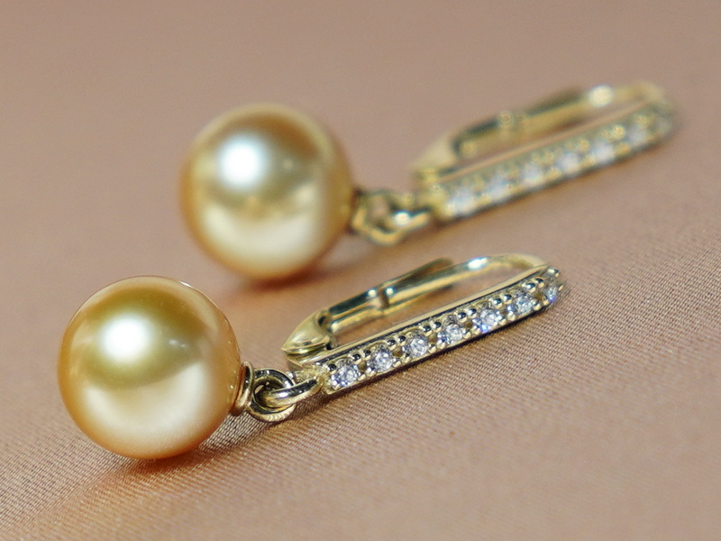 Perlové náušnice BC024YE-G jsou vyrobeny z pravých zlatožlutých jihomořských perel a kování ze žlutého zlata ryzosti 585/1000 (14kt.).