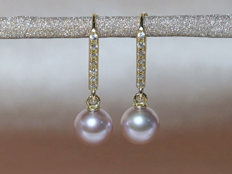 Perlové náušnice BC024YFE-L jsou vyrobeny z pravých fialovorůžových sladkovodních perel a kování ze žlutého zlata ryzosti 585/1000 (14kt.).