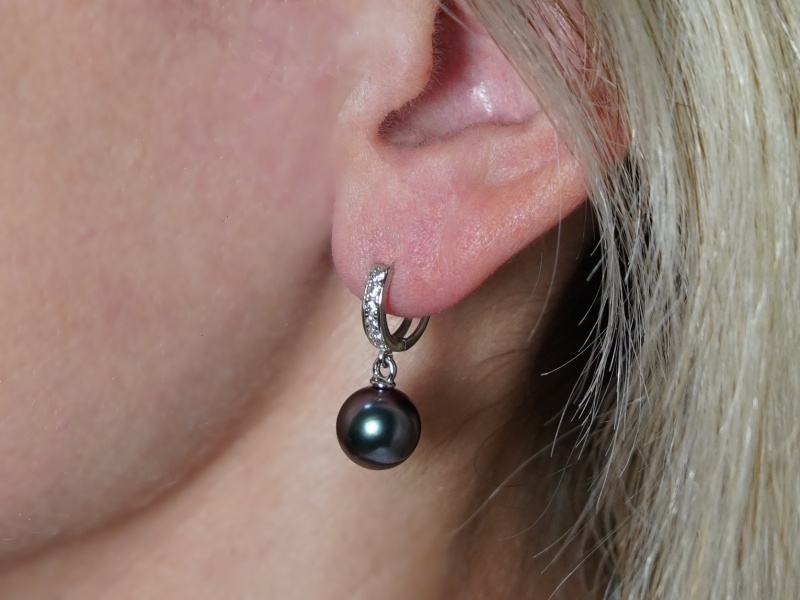 Perlové náušnice z pravých tahitských perel z bílého zlata 14kt.