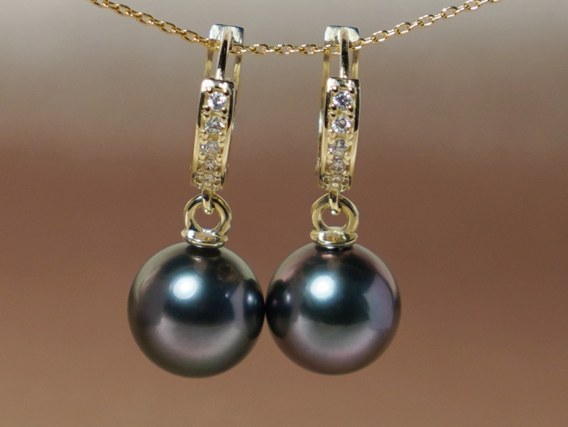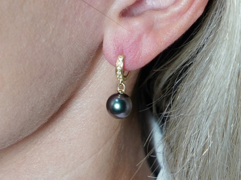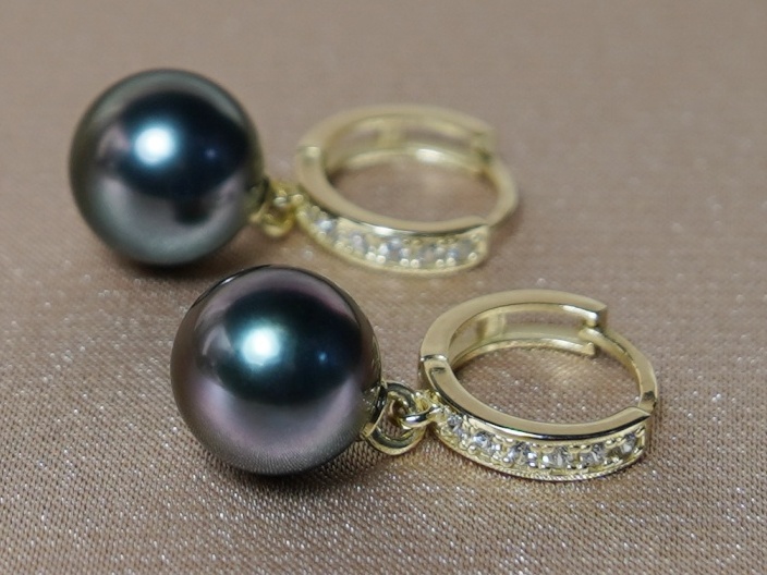 Perlové náušnice z pravých tahitských perel a žlutého zlata 14kt.