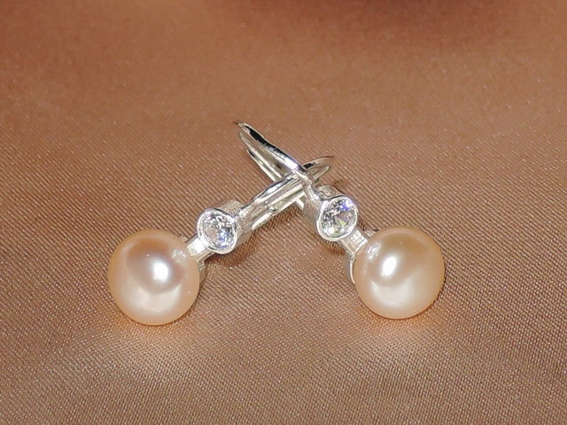 Náušnice vyrobené z broskvově růžových sladkovodních perel a kování z bílého zlata ryzosti 585/1000 (14kt.) Kombinovaných se zirkony. Perly s povrchovou kvalitou AAA mají částečně zploštělý tvar, hladký povrch a vysoký lesk. Zirkony náušnic mají velikost 3 mm, velikost perel můžete zvolit od 7 do 9 mm. Hmotnost kování náušnic je 1,90 gramu. Velikost kování bez perly je cca 18 x 11 mm. Na fotografii jsou náušnice s perlami velikosti 7 mm. Šperk na běžné nošení i vzácné příležitosti. Šperky posíláme v dárkovém balení spolu s certifikátem pravosti.