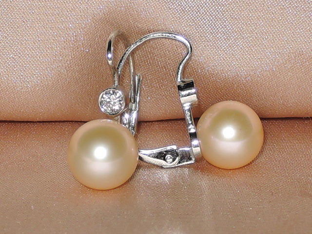 Perlové náušnice vyrobené z pravých broskvově růžových sladkovodních perel a kování z bílého zlata ryzosti 585/1000 (14kt.). Perly kvality AAA mají kulatý tvar, hladký povrch a velmi vysoký lesk. Kování náušnic sestávají z patentů kombinovaných se zirkony. Veľlkosť zirkonů je 3 mm. Hmotnost páru zlatých kování je cca 1,9 gramu. Velikost perel můžete zvolit od 8 do 9 mm. Na fotografii jsou perly velikosti 8 mm. Na požádání k náušnicím doporučíme přívěsek a prsten jako kombinaci do setu šperků. Šperky posíláme v dárkovém balení spolu s certifikátem pravosti. V Čechách máte dopravu zdarma.