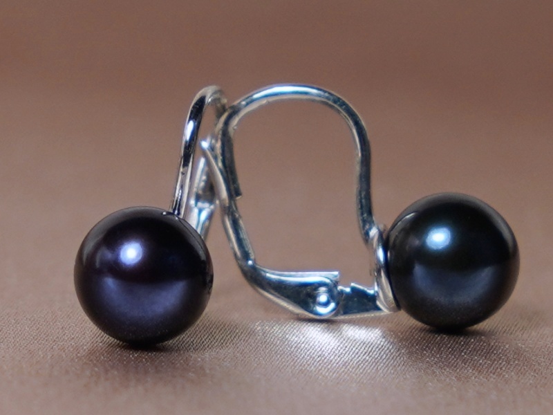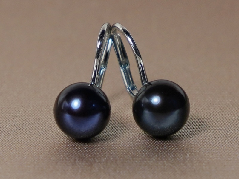 Perlové náušnice vyrobené z pravých černých sladkovodních perel a zapínání z bílého zlata ryzosti 585/1000 (14 kt.).