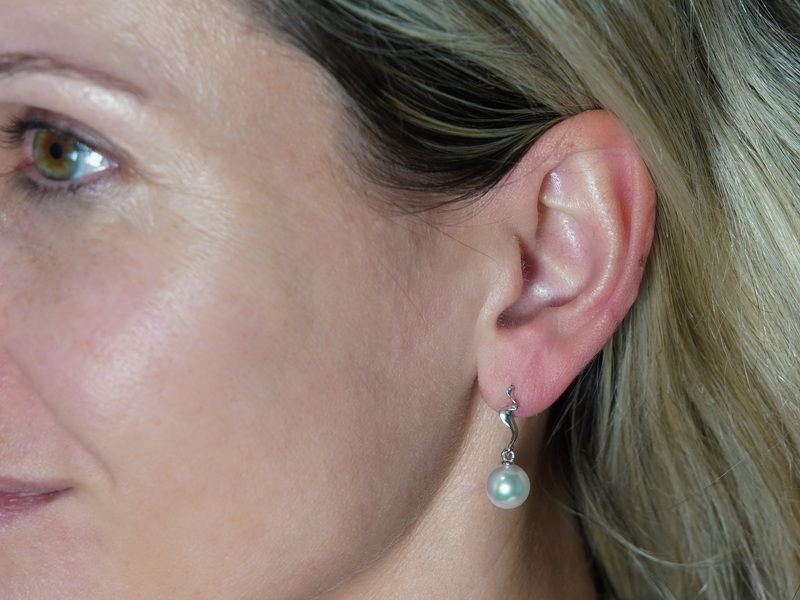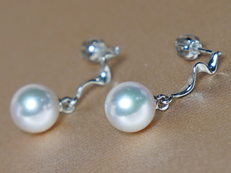 Perly mají hladký povrch a velmi vysoký lesk. Je možné vybrat si perly s velikostí 8 - 10mm. Hmotnost zlata je 1,45 gramu. Tento šperk je vhodný k přívěsku RGwPAAAwM, se kterým tvoří nádherný set. Na fotografiích jsou perly velikosti 9 mm.