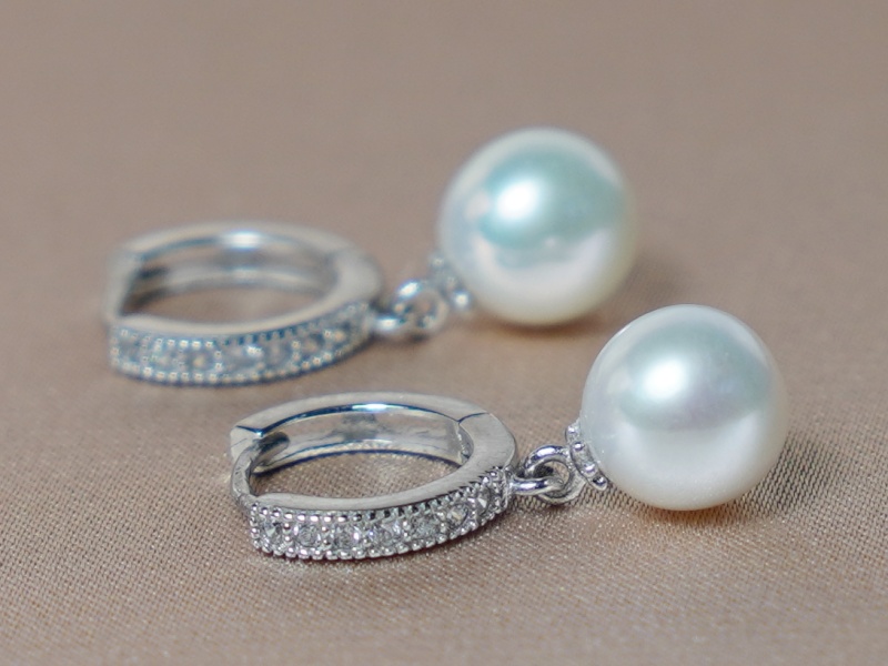 Perlové náušnice z pravých bílých sladkovodních perel ze stříbra.