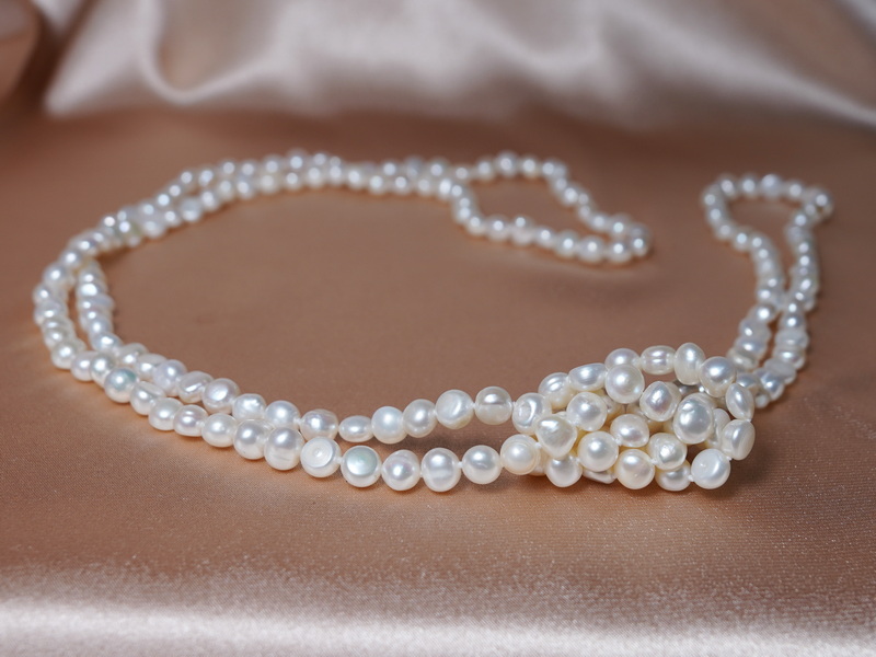 Dlouhý perlový náhrdelník DPN130A+wW vyrobený z bílých sladkovodních perel nepravidelného tvaru kvality A (tvar:A, povrch:A, lesk:AA) velikosti cca 7 - 8 mm. Délka náhrdelníku je 130 cm, lze jej nosit více způsoby a tak jej přizpůsobit různým příležitostem a různému oblečení. Perlový náhrdelník je vázán na pevné hedvábné niti s uzlíkem za každou perlou. Perlové šperky posíláme v dárkovém balení.