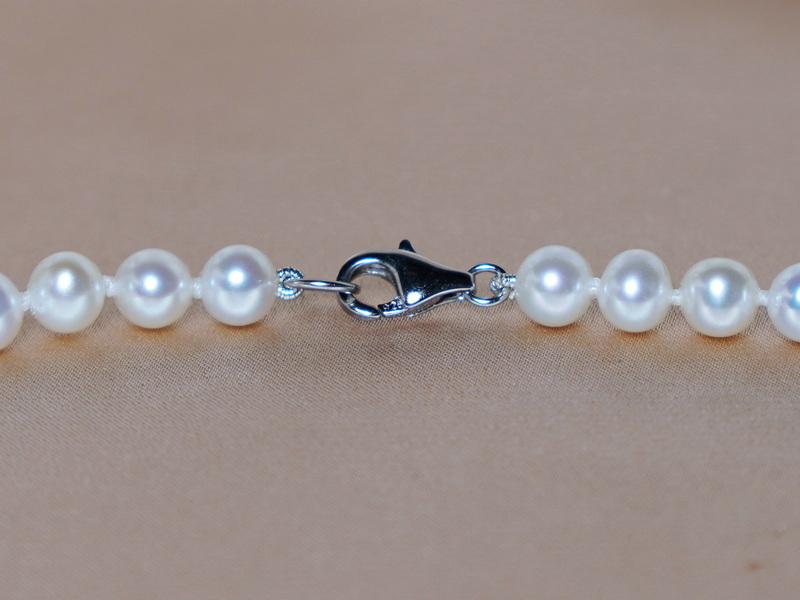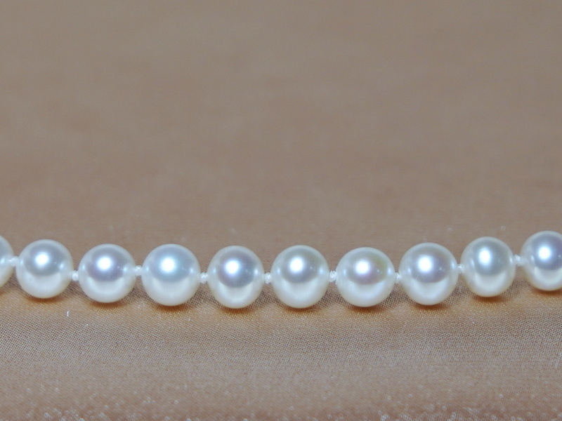 Perlový náhrdelník NRSN6065AAAwA z bílých sladkovodních perel (říční perly) velikosti 6 - 6,5 mm. Použity jsou téměř kulaté perly v kvalitě AAA (tvar AA+ až AAA, lesk AAA, čistota povrchu AAA).