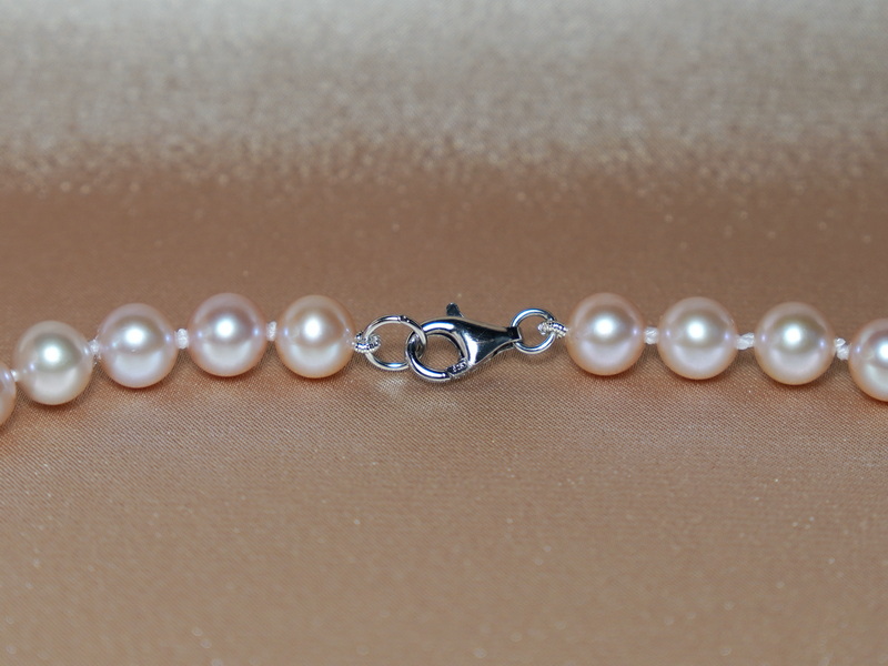 Náhrdelník v délce 45 cm je vázán na pevné hedvábné niti a mezi každou perlou jsou navázány uzlíky kvůli krásnějšímu vzhledu a bezpečnosti. Náhrdelník je ukončen uzávěrem ze stříbra ryzosti 925/1000. Na požádání vyrobíme perlový náhrdelník v jiných délkách, případně s jiným uzávěrem s přiměřeným zvýšením nebo snížením ceny. K náhrdelníku můžeme vyrobit perlový náramek a doporučit perlové náušnice, aby tvořily nádherný set šperků.