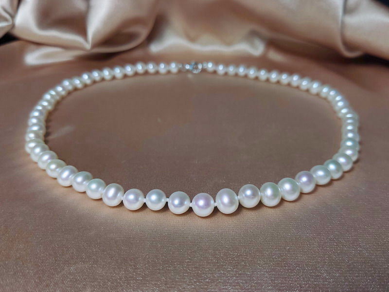Náhrdelník ORSN6070AA+wW je vyroben z bílých sladkovodních perel velikosti 6 - 7 mm. Použité jsou oválně kulaté perly v kvalitě AA+ (tvar AA, čistota povrchu AA+, lesk AA+ ). Na povrchu se mohou vyskytnout drobné nedokonalosti. Náhrdelník je vázán na pevné hedvábné niti a mezi každou perlou jsou uzlíky z důvodu krásnějšího vzhledu a bezpečnosti. Délka náhrdelníku je cca 45 cm a ukončen je karabinou ze stříbra ryzosti 925/1000. Na požádání vyrobíme náhrdelník v jiných délkách, případně s jiným uzávěrem s přiměřeným zvýšením nebo snížením ceny. Šperky posíláme v dárkovém balení s certifikátem pravosti.