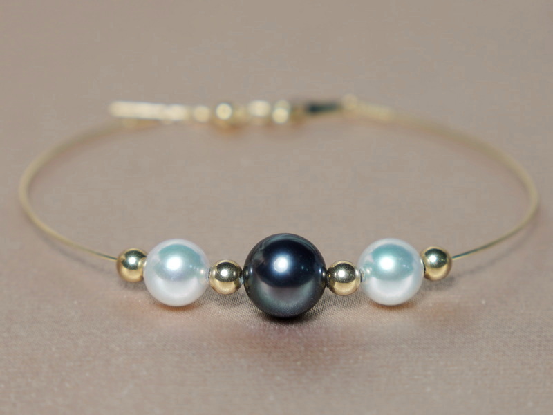 Perlový náramek WW15YB-TA se skládá ze dvou bílých mořských akoya perel a jedné černé tahitské perly umístěných na zlatém lanku ryzosti 750/1000 (18 kt.).