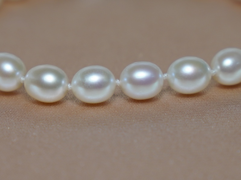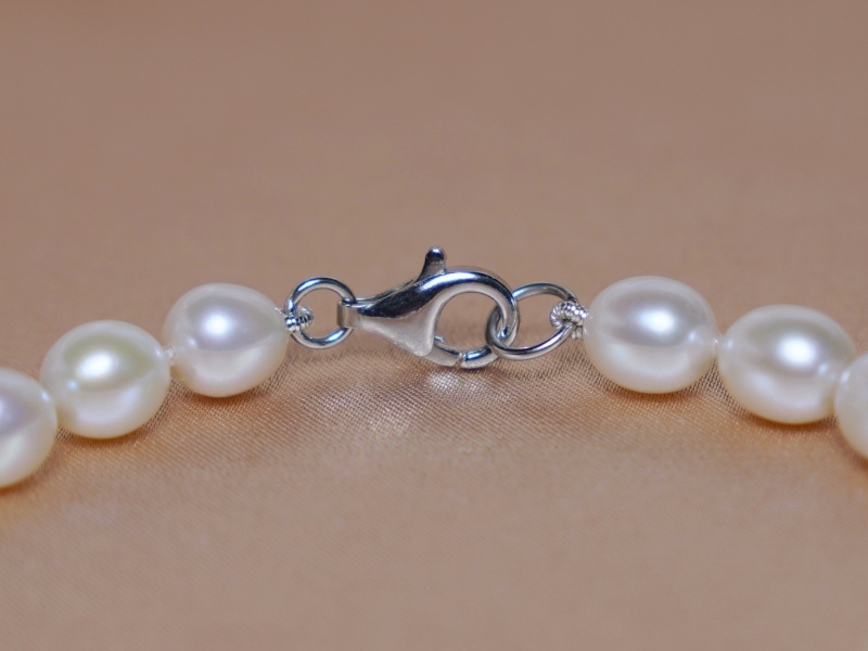 Velmi pěkný jednořadý perlový náramek OSB06AA+wJ vyrobený z bílých podélných sladkovodních perel velikosti cca 6x8 mm. Perly mají vysoký lesk. Mezi každou perlou jsou uzlíky z důvodu bezpečnosti a krásnějšímu vzhledu, navlečené jsou na dvojité hedvábné niti. Délka náramku je cca 195 mm, ukončen je uzávěrem ze stříbra ryzosti 925/1000. Šperky posíláme v dárkovém balení.