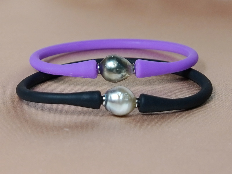 Náramek vyrobený z pravé tahitské perly velikosti cca 10 - 12 mm v kvalitě A a silikonové gumičky. Perla má nepravidelný tvar a na povrchu se vyskytují nedokonalosti v rámci uvedené kvality. Náramek není problém navléci i přes hrubší dlaň.