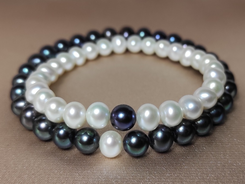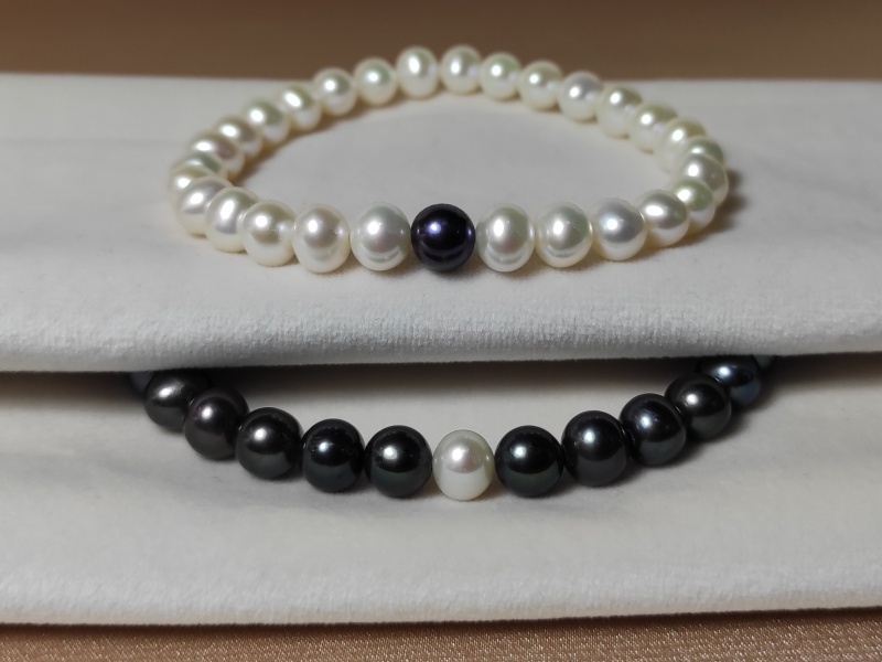 Náramek je vyjádřením propojení mezi partery. Náramek pro dámu je vyroben z bílých sladkovodních perel velikosti 6-7 mm. Perly mají oválně-kulatý tvar a kvalitu AA+. Má délku 18cm. Černá perla má parametry pánského náramku. Náramek pro pána je vyroben z černých sladkovodních perel velikosti 7,5 - 8,5 mm, mají oválně-kulatý tvar a kvalitu perel AA+. Velikost náramku je 20cm. Bílá perla má parametry dámského náramku. Oba náramky jsou navlečeny na silikonové gumičce.