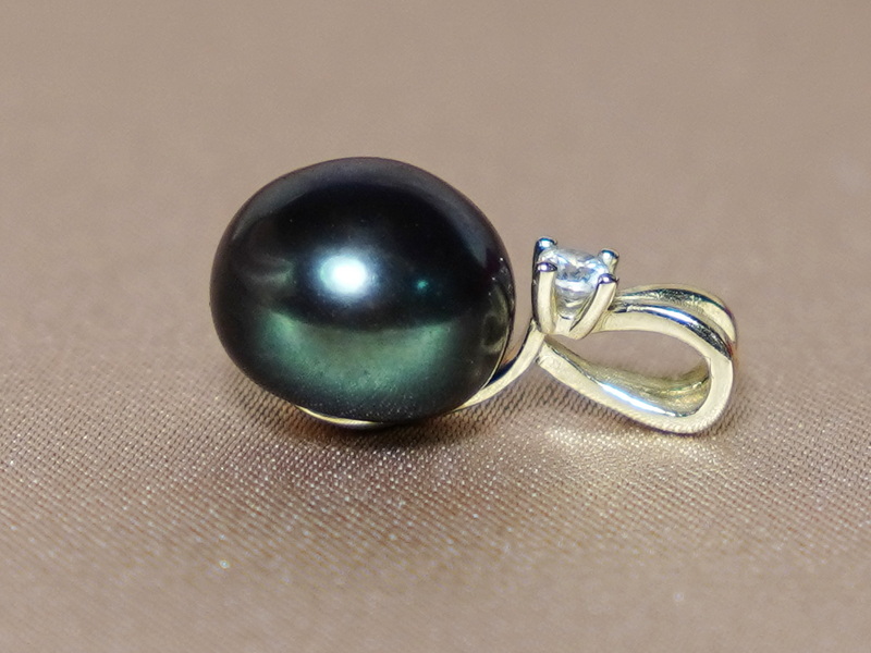 Přívěsek s perlou BC026WBP-B vyrobený z pravé černé sladkovodní perly a kování ze zlata ryzosti 585/1000 kombinováno se zirkonem velikosti 2,3 mm. Částečně zploštělá perla s povrchovou kvalitou AAA má hladký povrch a velmi vysoký lesk. Kování přívěsku má hmotnost cca 0,45 gramu. Velikost perly můžete zvolit od 8 do 9 mm. Na fotografii je perla velikosti 9 mm. Na požádání k přívěsku doporučíme náušnice a prsten jako kombinaci do setu šperků. Přívěsek posíláme v dárkové krabičce s certifikátem pravosti a dopravu neplatíte.