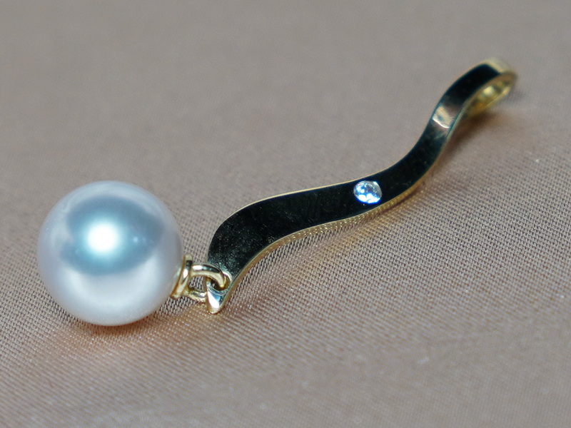 Perla nejvyšší kvality AAA má kulatý tvar, hladký povrch a vysoký lesk. Velikost perly můžete zvolit od 9 do 12 mm, na fotografiích perla velikosti 9 mm. Kování přívěsku je vyrobeno ze žlutého zlata 585/1000 (14kt.) kombinovaného se zirkony nebo brilianty velikosti cca 2mm / 0,033ct. Briliant je v kvalitě VVS / G, H. Celková hmotnost zlata přívěsku je cca 1,3 gramu. Celková délka přívěsku s perlou je cca 43 mm.