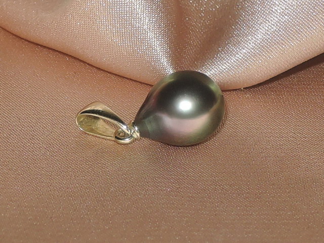Výjimečný elegantní přívěsek z tahitské perly kvality AA +. Perla má tvar slzy, hladký povrch a velmi vysoký lesk. Použité je kování ze žlutého zlata ryzosti 585/1000 (14kt.) s hmotností cca 0,45 gramu. Je možné si vybrat perlu velikosti od 9 do 11,5 mm. Přívěsek je vhodný k náušnicím TDYE100H, s nimiž tvoří krásný set. Na obrázku je přívěsek s perlou velikosti 9,6 x 10,6 mm.