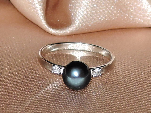 Prsten s perlou vyrobený z pravé černé sladkovodní perly a kování z bílého zlata ryzosti 585/1000. Perla s povrchovou kvalitou AAA má půlkulatý tvar, hladký povrch a velmi vysoký lesk. Velikost perly můžete zvolit od 7 do 9 mm. Na fotografii je perla velikosti 7 mm. Hmotnost kování je cca 1,6 g pro prsten velikosti č.56. Menší změna velikosti prstenu je možná po dohodě. Kování prstenu je kombinováno s dvěma zirkony velikosti 2 mm. Na požádání k prstenu doporučíme náušnice a přívěsek nebo náhrdelník jako kombinaci do setu šperků. Prsten posíláme v dárkové krabičce s certifikátem pravosti.