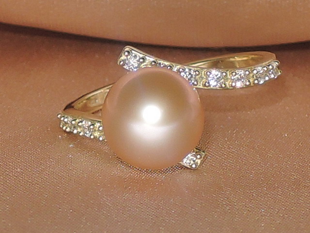 Prsten s perlou vyrobený z pravé broskvově růžové sladkovodní perly a kování ze žlutého zlata ryzosti 585/1000. Perla kvality AAA má kulatý tvar, hladký povrch a velmi vysoký lesk. Velikost perly můžete zvolit od 8 do 10 mm. Na fotografii je perla velikosti 9 mm. Hmotnost kování je 2,1 g pro prsten velikosti č.56. Menší změna velikosti prstenu je možná po dohodě. Kování prstenu je kombinované se čtrnácti ks zirkonů velikosti 1,5 mm. Na požádání k prstenu doporučíme náušnice a přívěsek nebo náhrdelník jako kombinaci do setu šperkov.Šperky posíláme v dárkovém balení spolu s certifikátem pravosti.